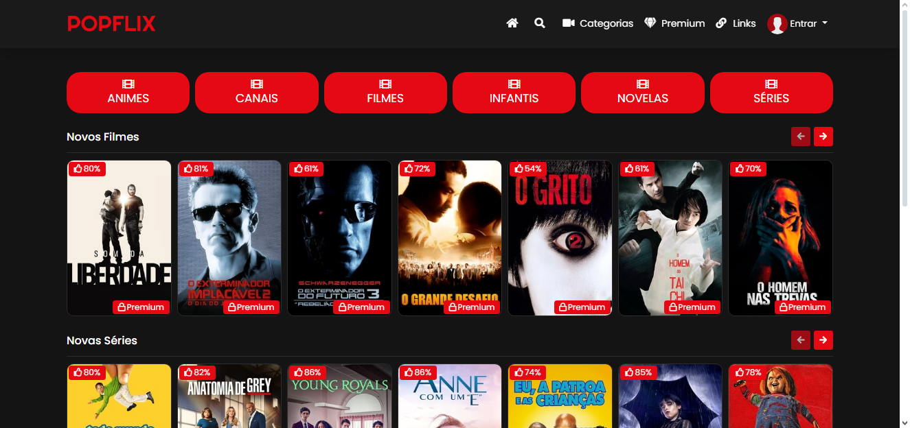 O sistema também deixamos nos campos de URL clicável, após clicar o filme ou a série irá abrir em seu navegador.
