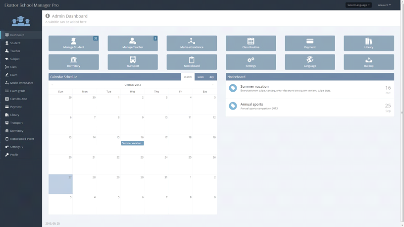 Controle toda a gestão de sua escola com esse sistema completo, com cadastro de alunos, professores, responsáveis pelos alunos, financeiro, notas, calendários entre outras opções no menu, o sistema é em php 7.4 e esta em Inglês.